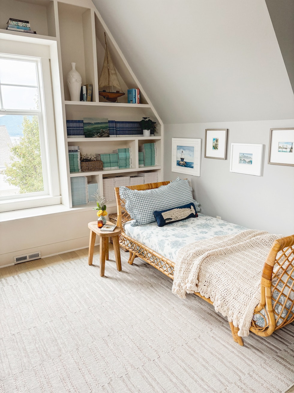 Šiuo metu laukiu, kol bus pristatytos šios dvi žavios išskleidžiamos kušetės, kurias naudosime vietoj vienos dabar turimos rotango dvigulės kušetės (taip pat dvigulės lovos šiame kambaryje). Manau, kad dėl to „Snug“ bus daug funkcionalesnis, nes kušetės yra dvigubai daugiau nei sėdimos vietos, o su lovomis tai suteikia mums dar trys čiužiniai galima iš viso keturiems, plius dvigulės lovos kampelis! Tai nėra didelis kambarys, tačiau toks išdėstymas reiškia, kad kambarys gali patogiai dirbti visai šeimai ir vis tiek būti lankstus vaikams ar draugų grupėms.